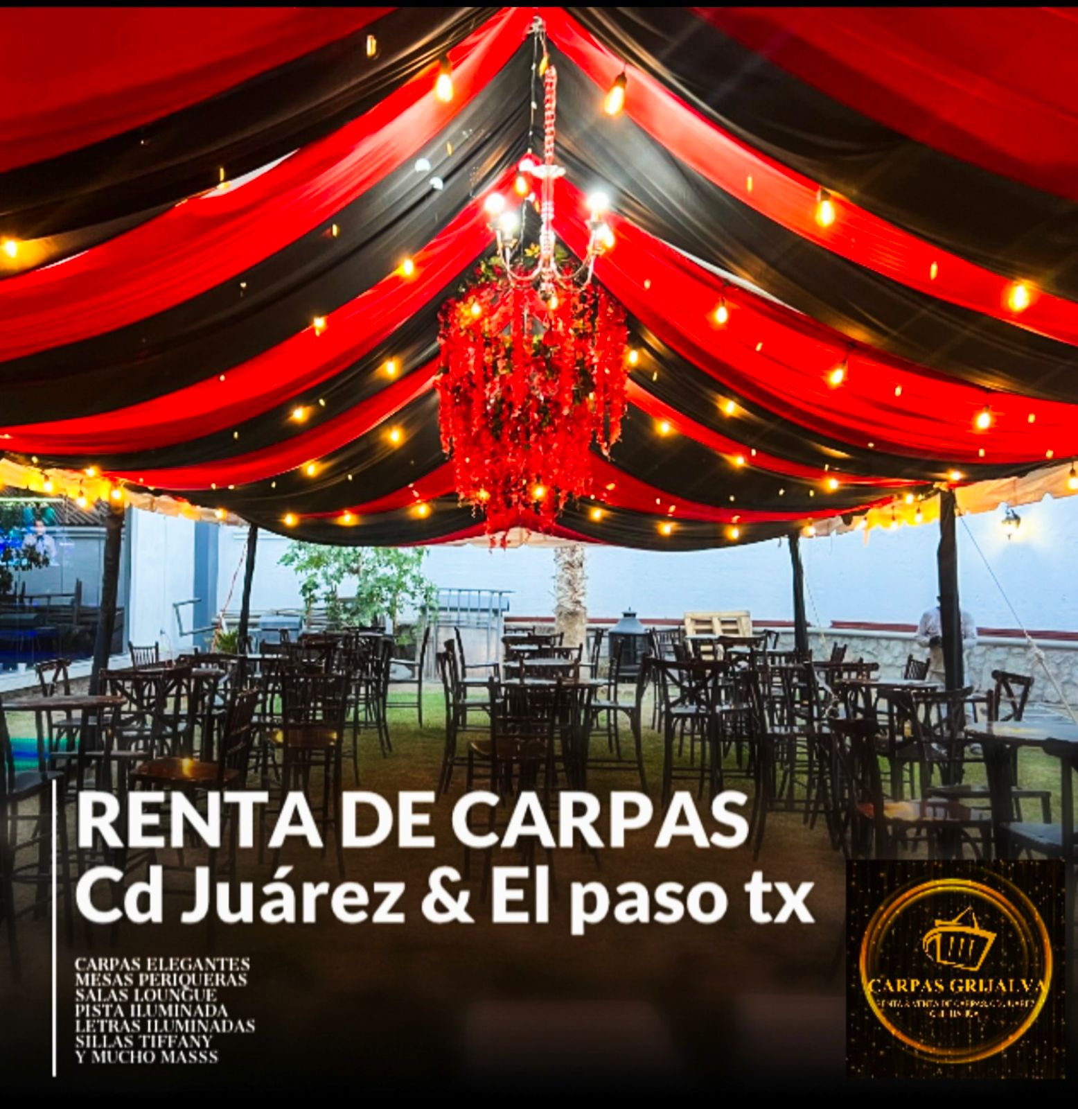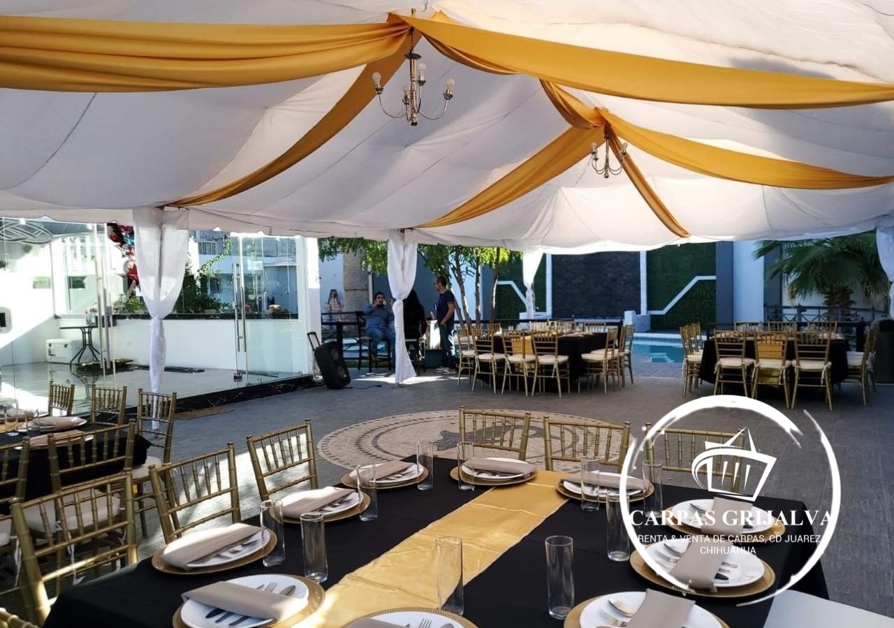 Grijalva se especializa en la renta de carpas de todo tipo que podrán utilizar en bodas y otros eventos especiales. Estas carpas son de alta calidad y muy resistentes, brindando a los novios y sus invitados un entorno fresco y elegante para cualquier tamaño de boda al aire libre tanto en la ciudad de Chihuahua como en los alrededores.